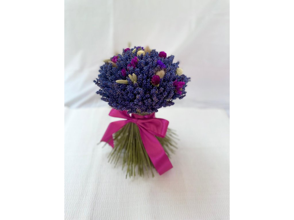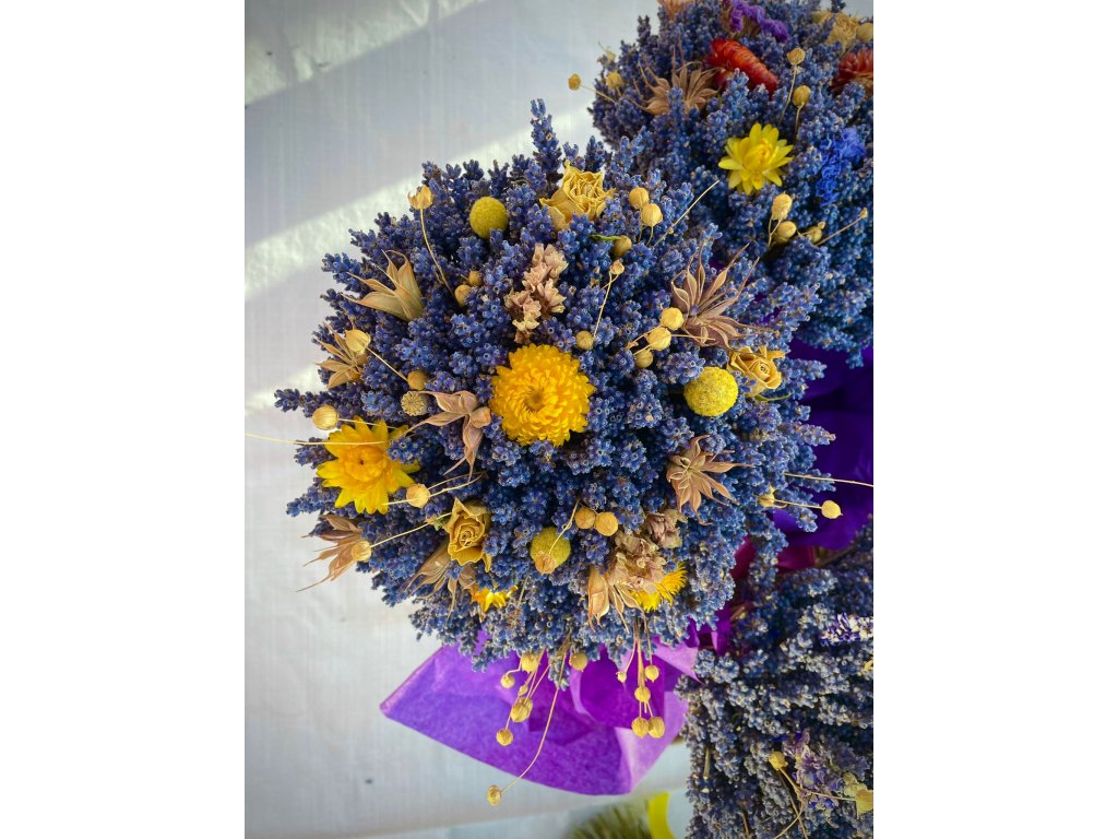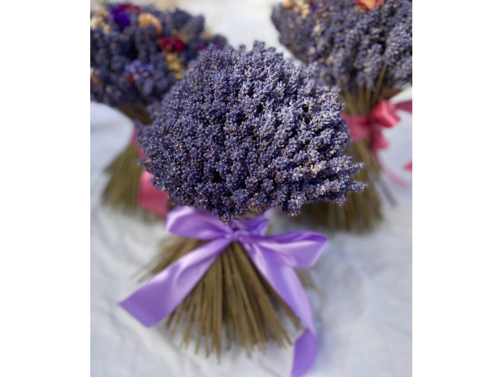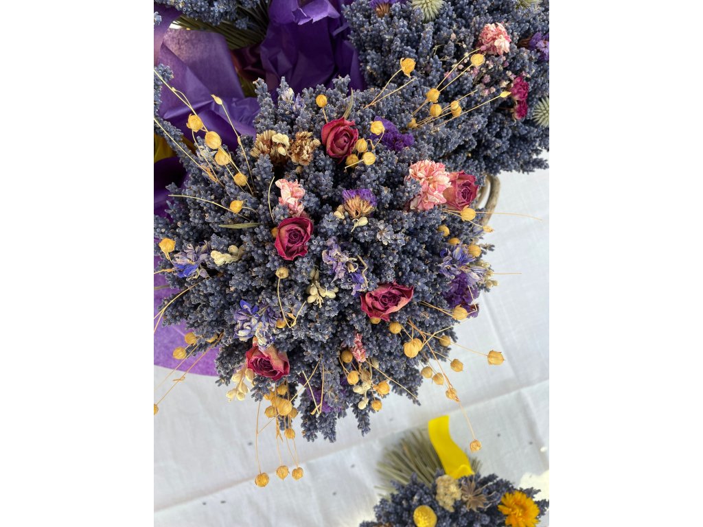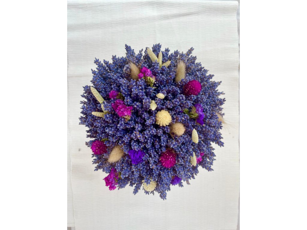 Levandulová kytice o průměru cca 22 cm, výška cca 30 cm.