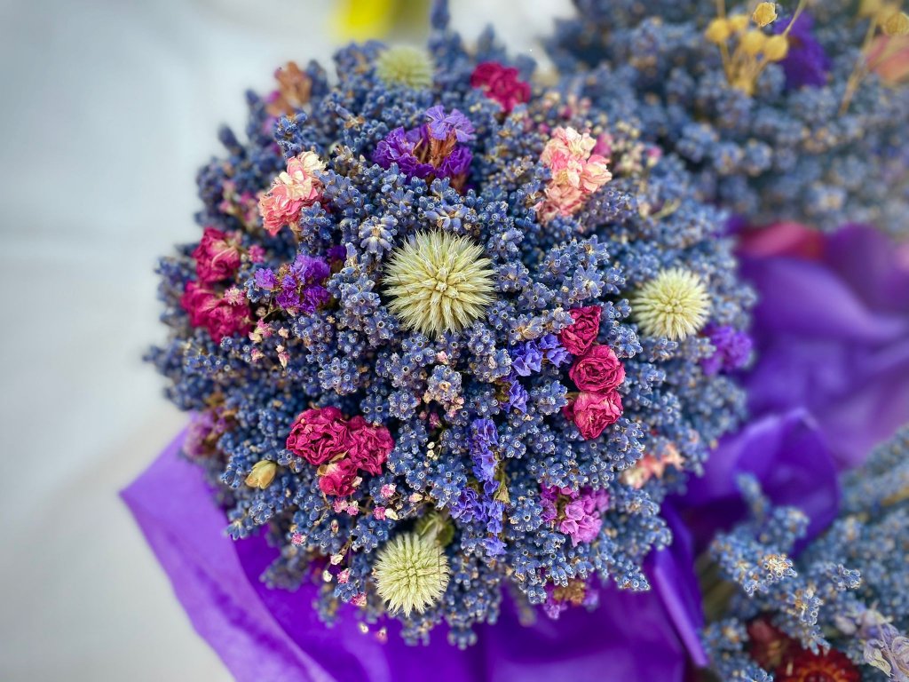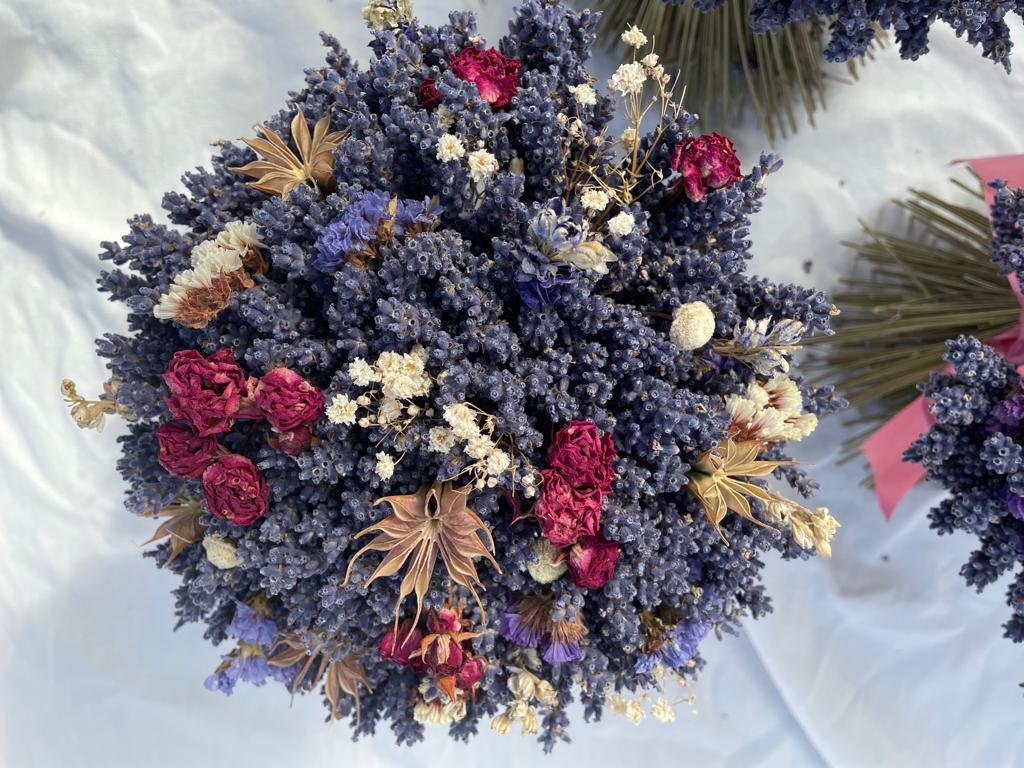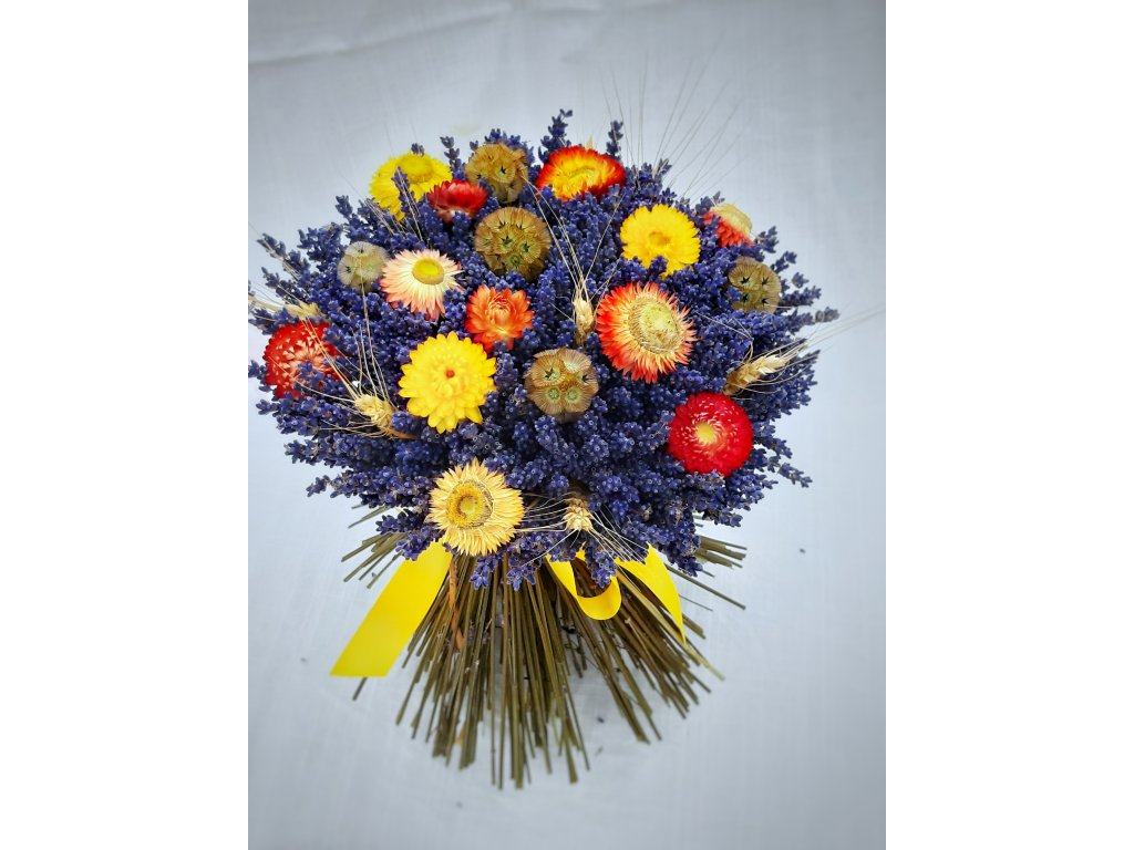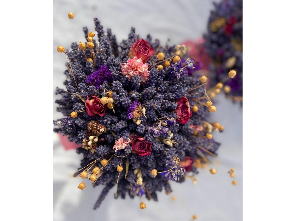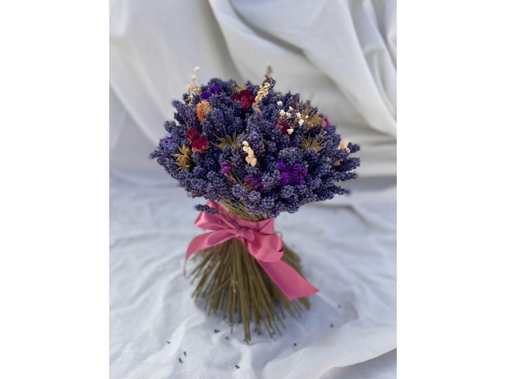 Levandulová kytice o průměru cca 22 cm, výška cca 30 cm.