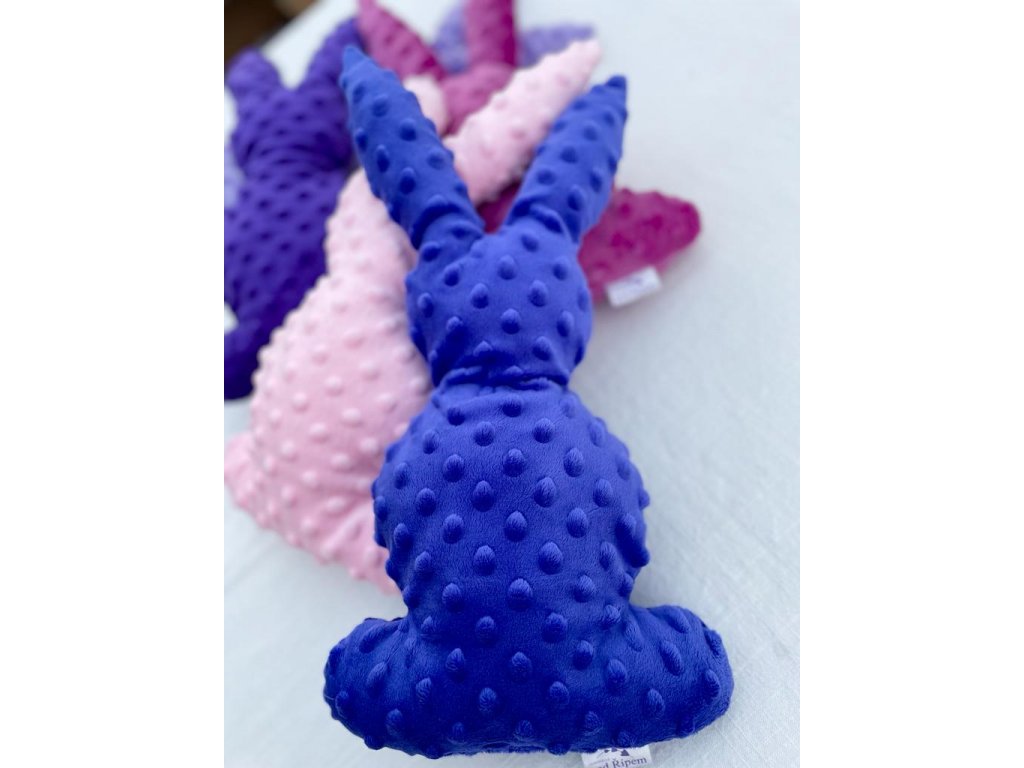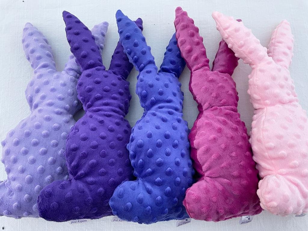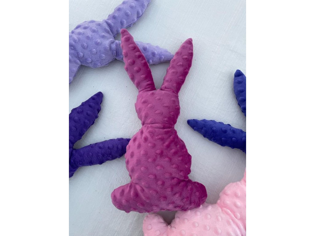 Zajíček minky je krásným milým a heboučkým dárkem. Jednoduchý tvar bez zbytečných záhybů a nebezpečných doplňků ohrožujících vaše nejmenší děti je ideální kamarádem na hraní, cesty nebo spaní. Levandulovou barvu této plyšové látky, oblíbeného materiálu zavinovaček, dek nebo županů, skvěle doplňuje levandulová vůně z květu přidaného do výplně. Hračka je naším autorským ručně vyrobeným produktem, nejedná se o žádný asijský dovoz. Vybírat můžete ze světle fialové nebo tmavě fialové barvy. Namalovaný obličej není součástí originálního produktu (můžete si namalovat fixem na látky).