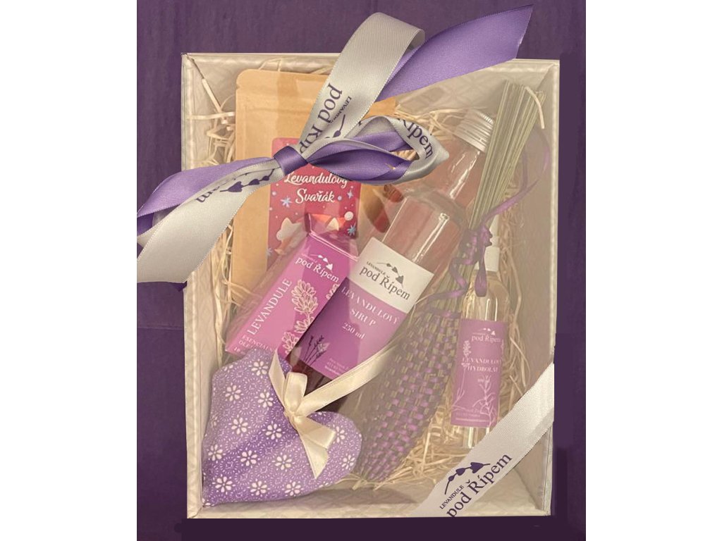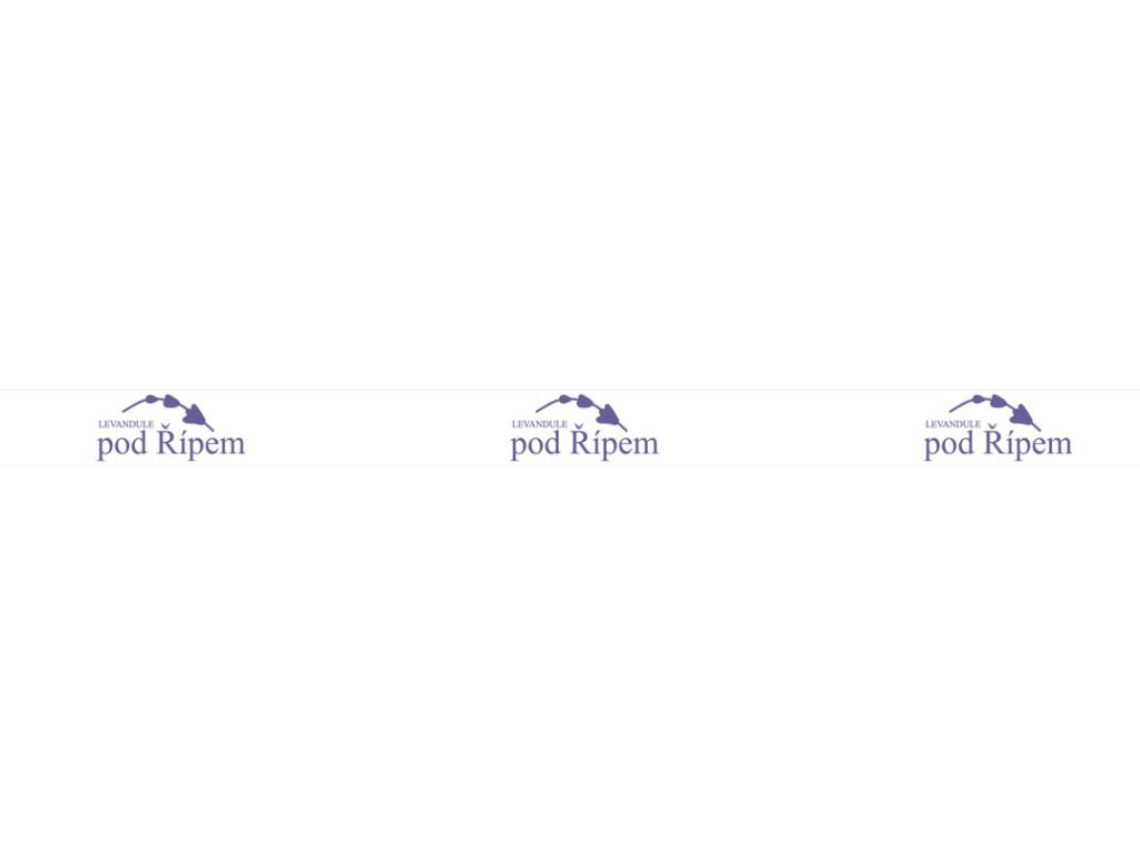 Kazeta je uzavřená průhledným víkem a převázaná stuhou s logem.